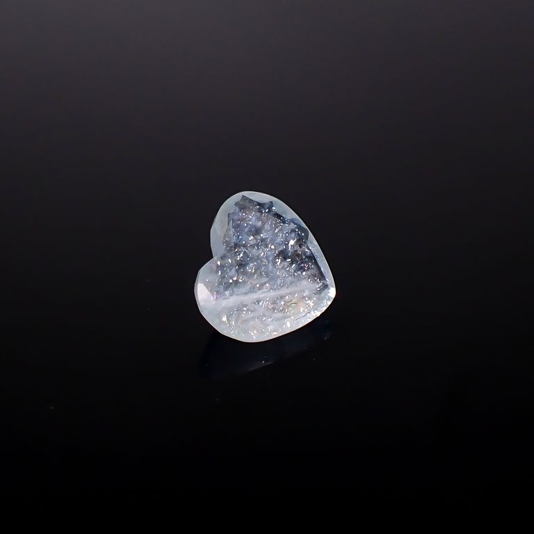 淡いアイスブルーの結晶の中に白銀やほのかな虹色がきらめく、インクルージョンを楽しむアクアマリンです。たしかに、シンデレラが魔法使いのおばあさんの魔法でブルーのドレスに変身した瞬間の、あのキラキラとしたシーンが思い浮かびますね。アクアマリンにおける、新たなプリンセスの登場です。