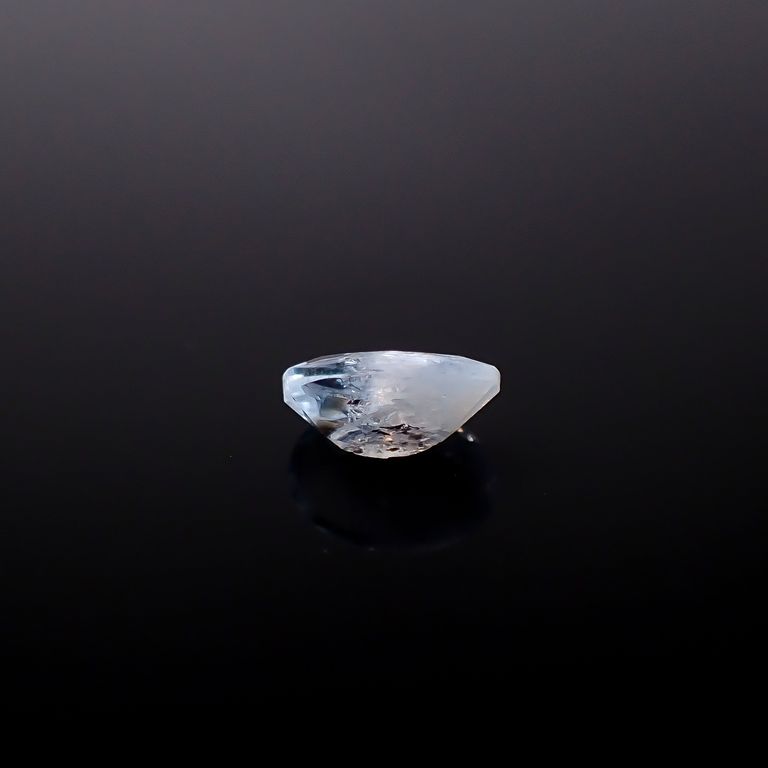 淡いアイスブルーの結晶の中に白銀やほのかな虹色がきらめく、インクルージョンを楽しむアクアマリンです。たしかに、シンデレラが魔法使いのおばあさんの魔法でブルーのドレスに変身した瞬間の、あのキラキラとしたシーンが思い浮かびますね。アクアマリンにおける、新たなプリンセスの登場です。
