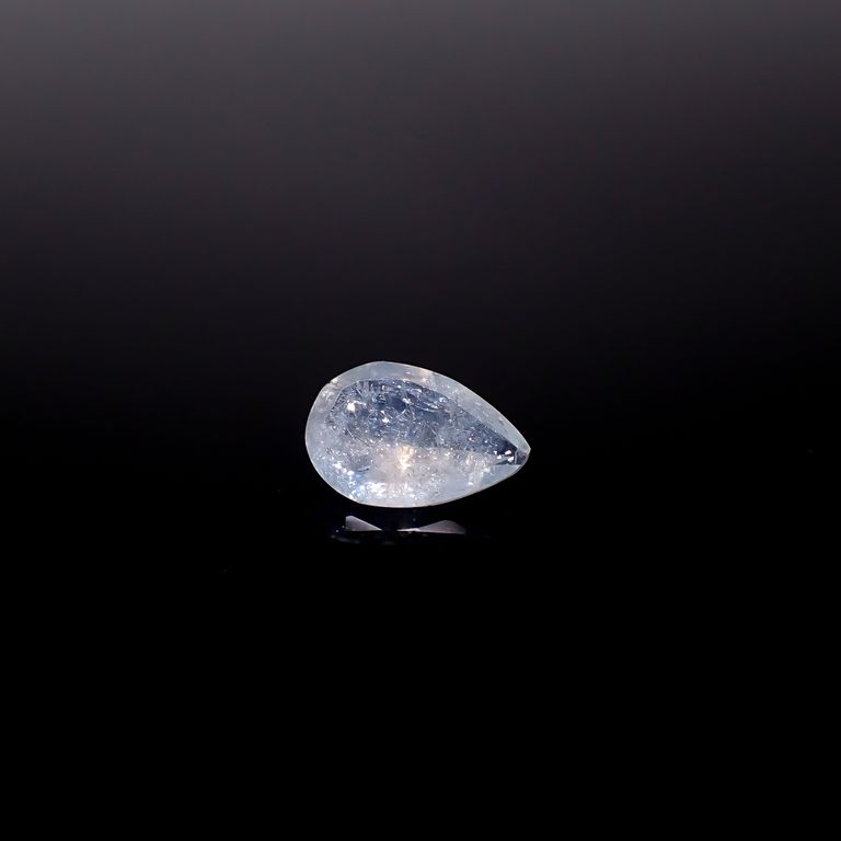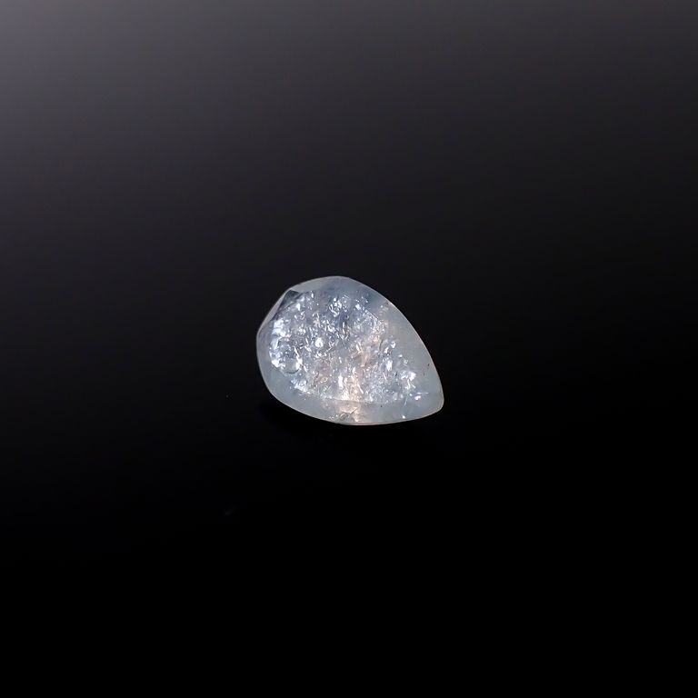 淡いアイスブルーの結晶の中に白銀やほのかな虹色がきらめく、インクルージョンを楽しむアクアマリンです。たしかに、シンデレラが魔法使いのおばあさんの魔法でブルーのドレスに変身した瞬間の、あのキラキラとしたシーンが思い浮かびますね。アクアマリンにおける、新たなプリンセスの登場です。