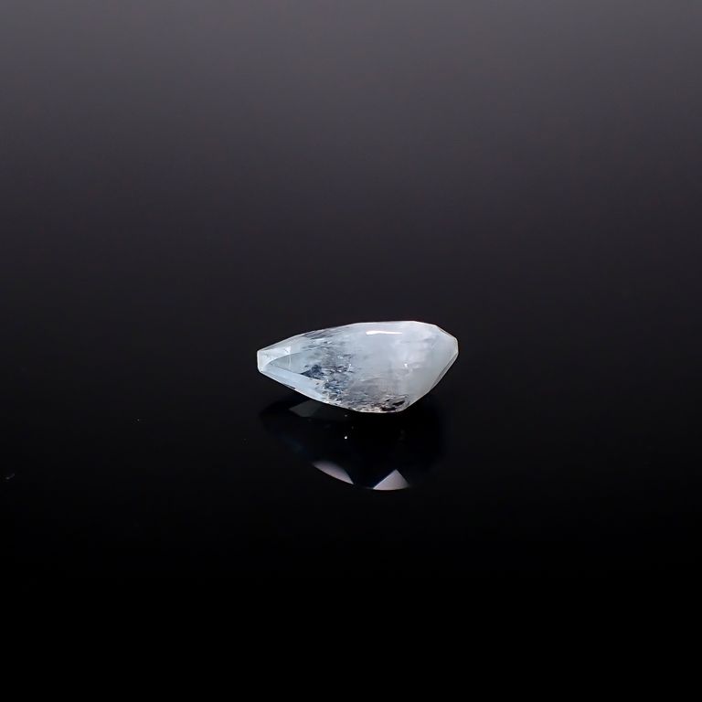 淡いアイスブルーの結晶の中に白銀やほのかな虹色がきらめく、インクルージョンを楽しむアクアマリンです。たしかに、シンデレラが魔法使いのおばあさんの魔法でブルーのドレスに変身した瞬間の、あのキラキラとしたシーンが思い浮かびますね。アクアマリンにおける、新たなプリンセスの登場です。