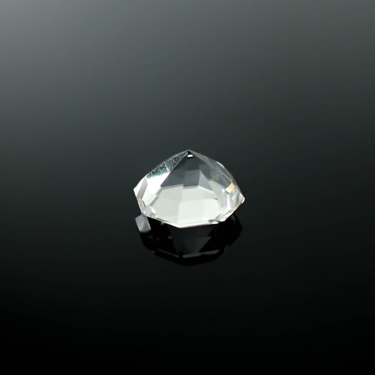 キューレット(お尻の部分)に職人の手作業でカットを施し、正面から見た際にルースの内部に八角形の星の形が現れる特殊なカットに仕上げました。
