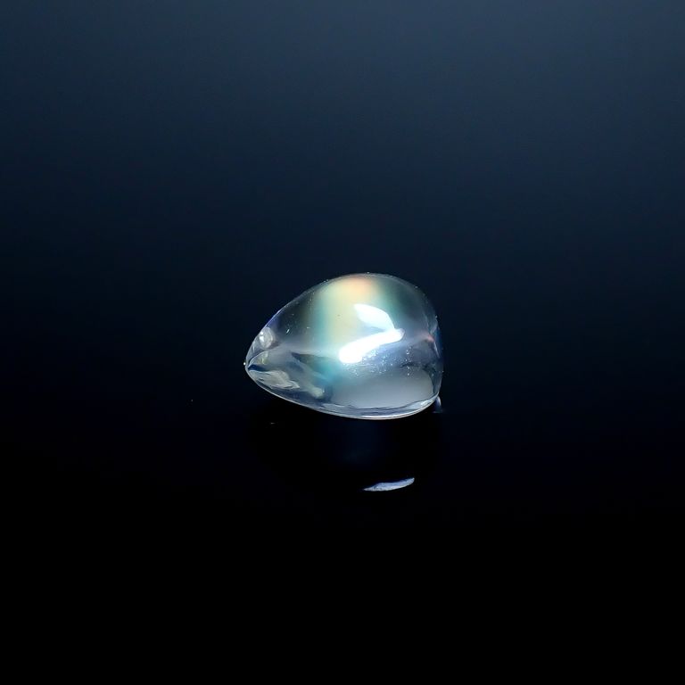 白色やカラーレスの結晶に、見る角度や光加減などによってオーロラのような光(シラー)が浮かび上がる神秘的な宝石です。ブルーをはじめ、イエロー、ピンク、オレンジ、グリーンなどのまさに虹色といった様々な色のシラーを楽しめます。