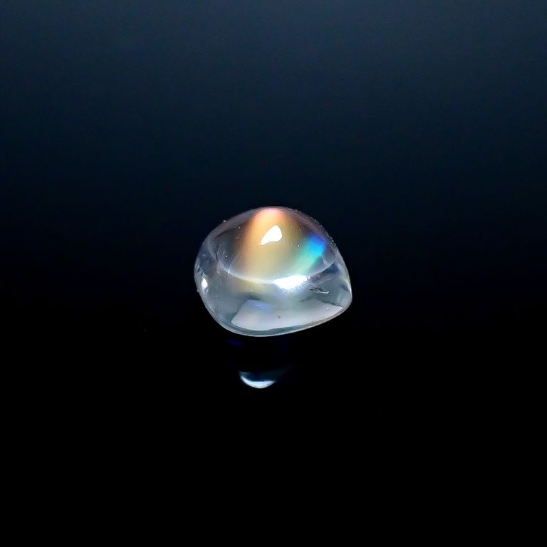 白色やカラーレスの結晶に、見る角度や光加減などによってオーロラのような光(シラー)が浮かび上がる神秘的な宝石です。ブルーをはじめ、イエロー、ピンク、オレンジ、グリーンなどのまさに虹色といった様々な色のシラーを楽しめます。