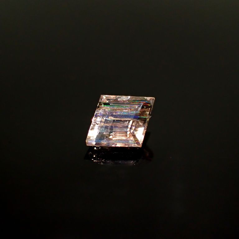 強い光をあてることで虹色の輝きが出現する、スキャポライトの中でも希少性の高いレインボースキャポライトです。