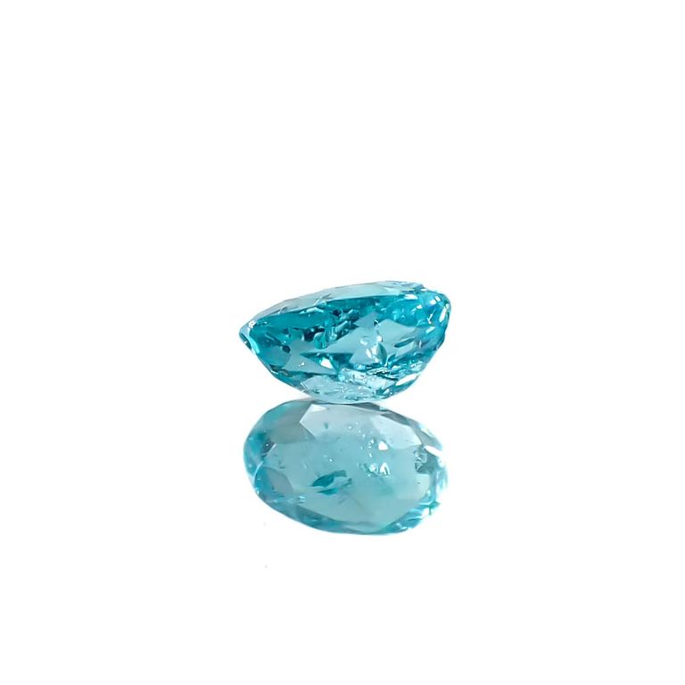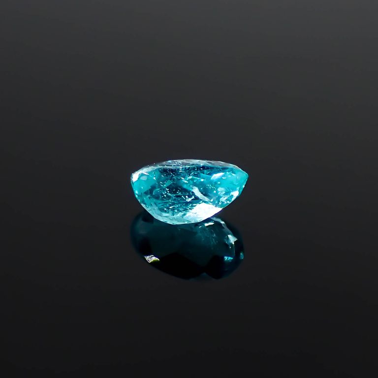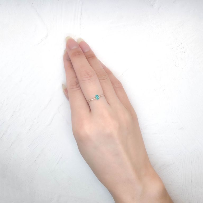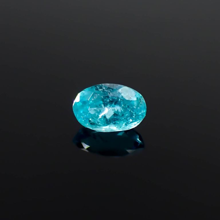 パライバトルマリンは含まれる成分や産地などの違いによって、美しく澄んだブルーから、優しいライトグリーン、またはネオンブルーに輝くものまでのカラーバリエーションがあります。トルマリングループの中の、リシア電気石(エルバイト/Eelbaite)に銅(Cu)が発色要因として含有された宝石で、含有量やそのほかに含まれるマンガン(Mn)の割合によって少しずつ色合いに違いが出ます。