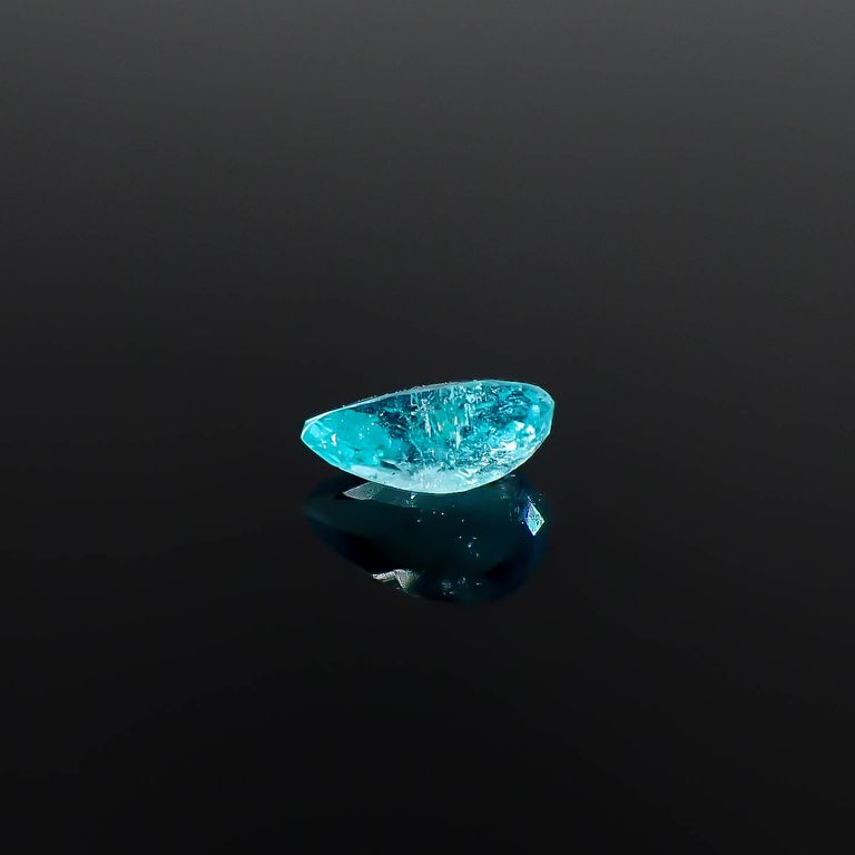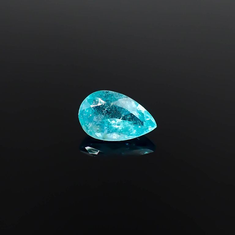 パライバトルマリンは含まれる成分や産地などの違いによって、美しく澄んだブルーから、優しいライトグリーン、またはネオンブルーに輝くものまでのカラーバリエーションがあります。トルマリングループの中の、リシア電気石(エルバイト/Eelbaite)に銅(Cu)が発色要因として含有された宝石で、含有量やそのほかに含まれるマンガン(Mn)の割合によって少しずつ色合いに違いが出ます。