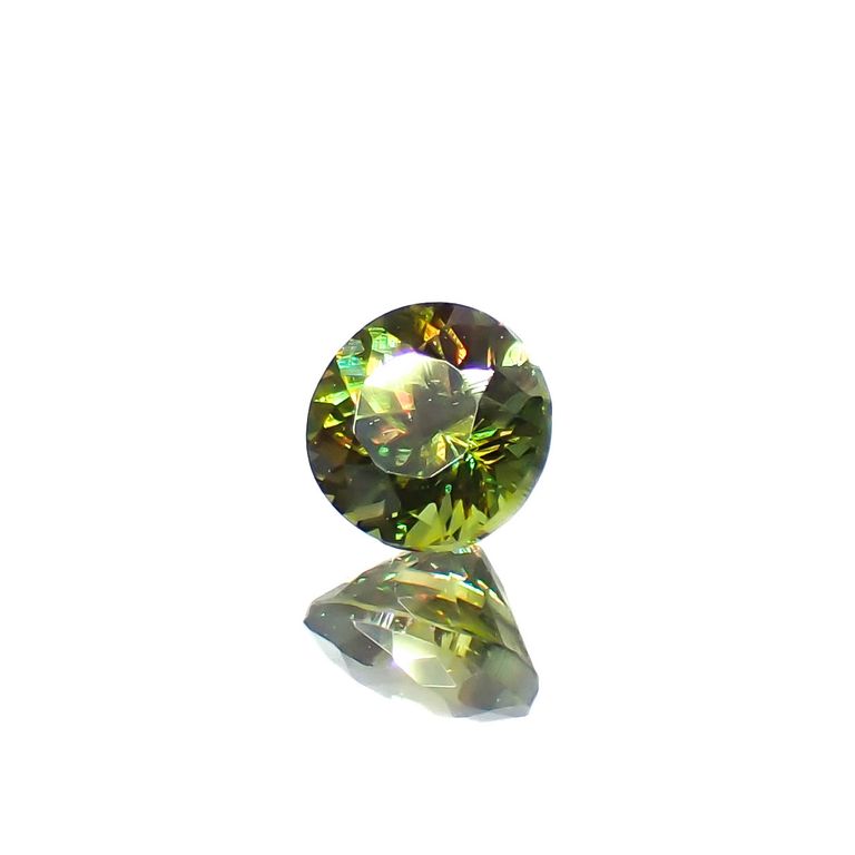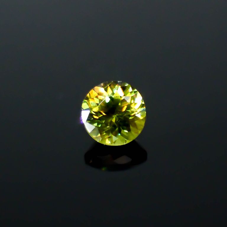 スフェーンは特に、このファイアが強く現れる宝石として知られています。光の分散率がダイヤモンドよりも大きく、また複屈折も大きいため、透明度の高いスフェーンのファセットカットはダイヤモンド以上の輝きを放つのです。