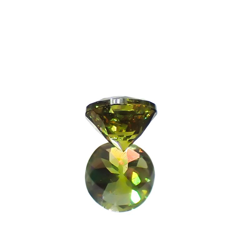 同じようにギラギラとした虹色の輝きを持つ宝石といえばスファレライトを思い浮かべますが、スファレライトは等軸晶系のため、複屈折をもちません。代わりに分散度が非常に大きいため、あのようなファイアが出ています。