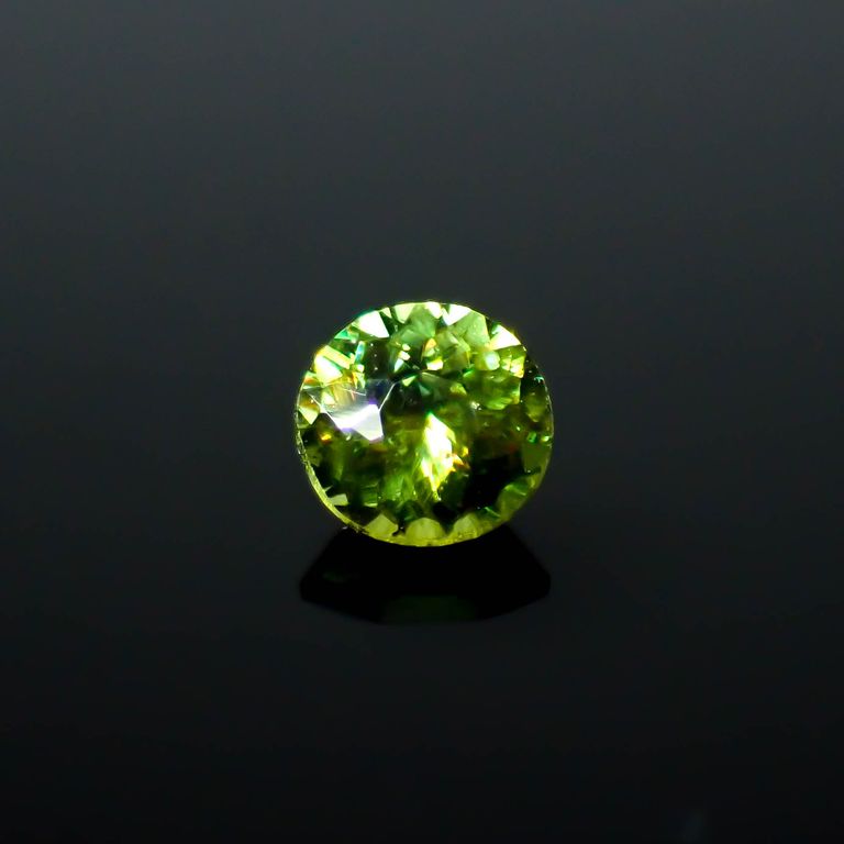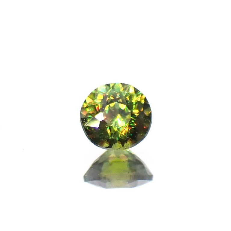 スフェーンは特に、このファイアが強く現れる宝石として知られています。光の分散率がダイヤモンドよりも大きく、また複屈折も大きいため、透明度の高いスフェーンのファセットカットはダイヤモンド以上の輝きを放つのです。