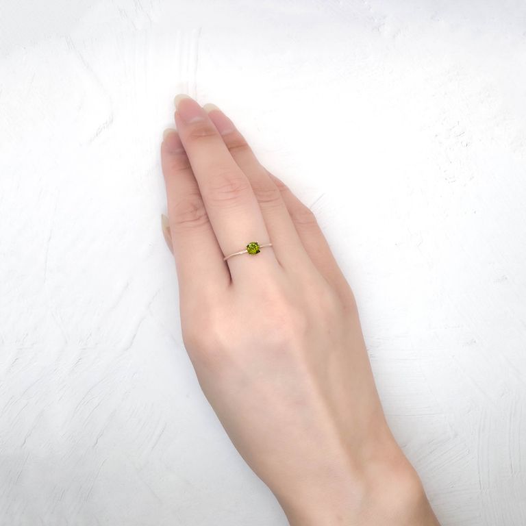 カラーは褐色から鮮やかなグリーンまでの色幅があります。クロムが多く含まれると鮮やかなグリーンのクロム・スフェーン、バナジウムが多いとゴールデンやイエローグリーン、オレンジのバナジウム・スフェーンになります。