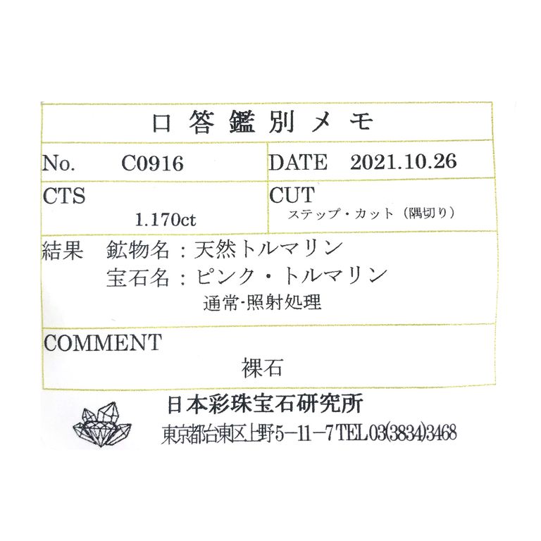 TOP STONEのルースは鑑別機関にてチェックを受け、商品名称との相違のないことを確認しております(一部抜き取り鑑別の商品あり。注1)。鑑別の種類は下記のいずれかのものとなります。