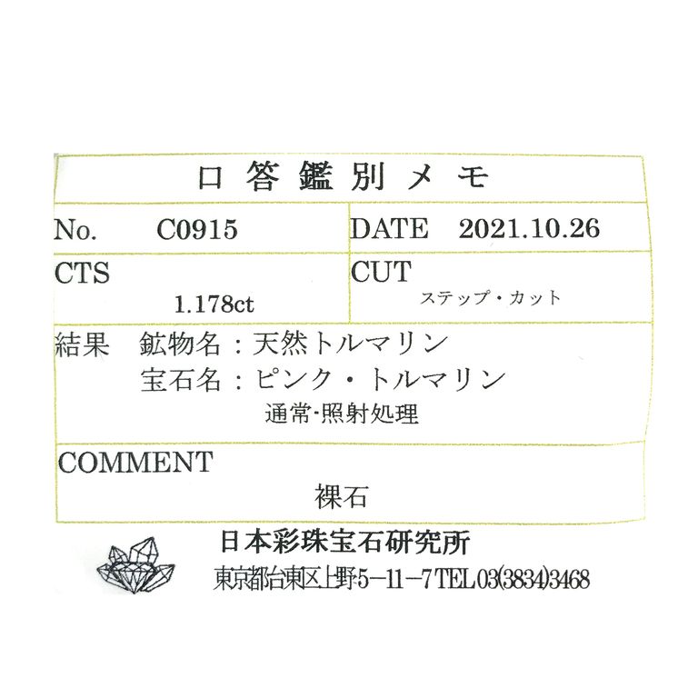 AGL加盟団体においてはパライバトルマリンは鑑別書+分析報告書の添付が必要になり高額となるため、口答鑑別(ソーティング)でCu(銅)とMn(マンガン)の数値を記載していただける一般社団法人宝石貴金属協会に依頼しております。