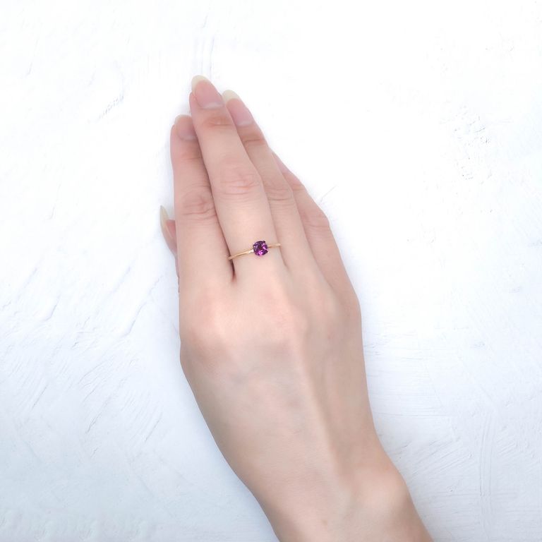 その名の通り「グレープ」のような色味を持つことが由来となる、みずみずしいカラーが特徴のガーネットです。種類としてはロードライトガーネットに分けられますが、その中で特にバイオレット感が強いものをグレープガーネットと呼んでいます。
