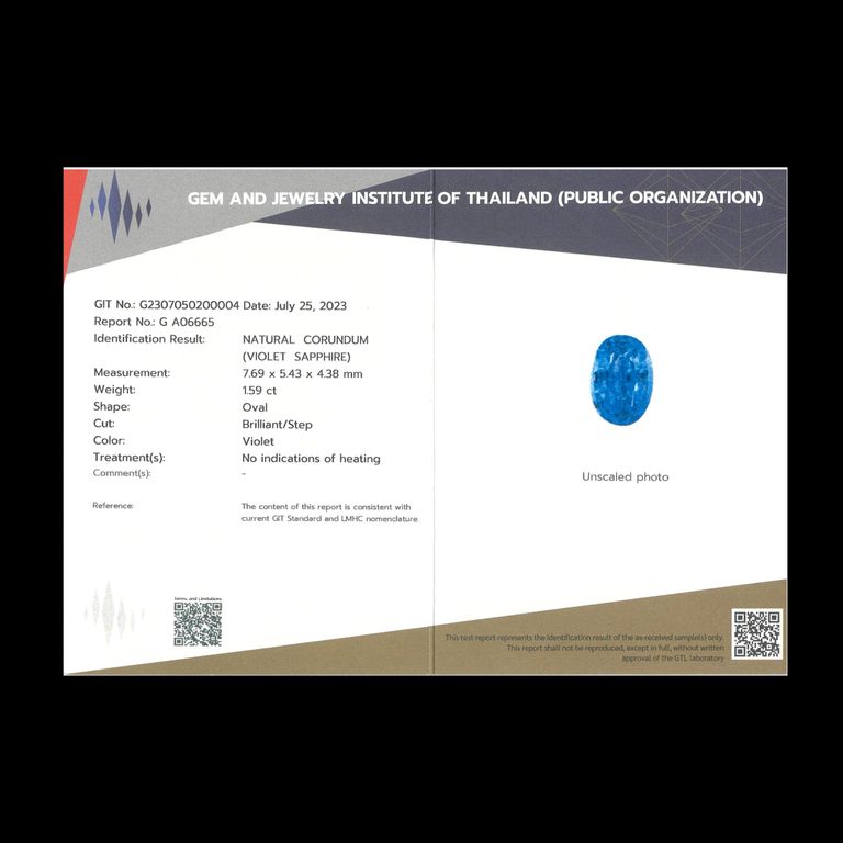 バイオレットサファイア 非加熱(宝石名バイオレット・サファイア)スリランカ/マダガスカル産 1.59ct GIT鑑付[250931152]7.69x5.43mm前後