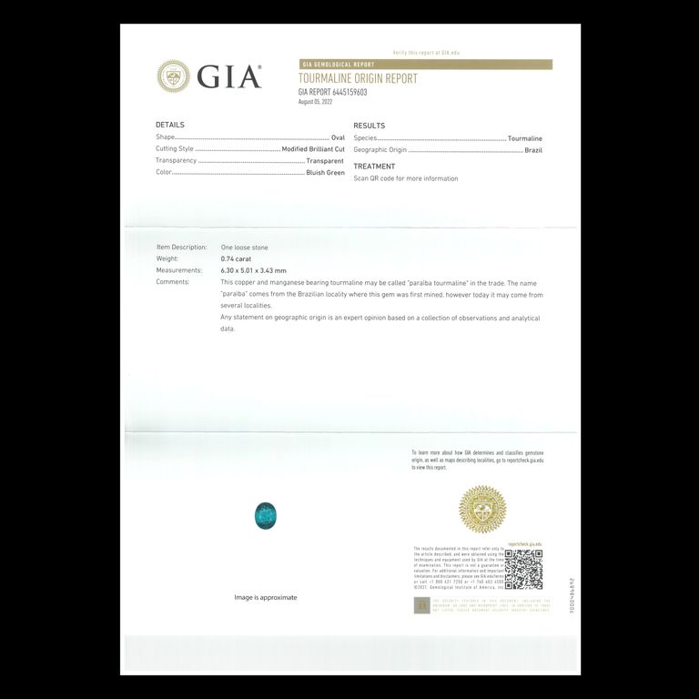 AGL加盟団体においてはパライバトルマリンは鑑別書+分析報告書の添付が必要になり高額となるため、口答鑑別(ソーティング)でCu(銅)とMn(マンガン)の数値を記載していただける一般社団法人宝石貴金属協会に依頼しております。