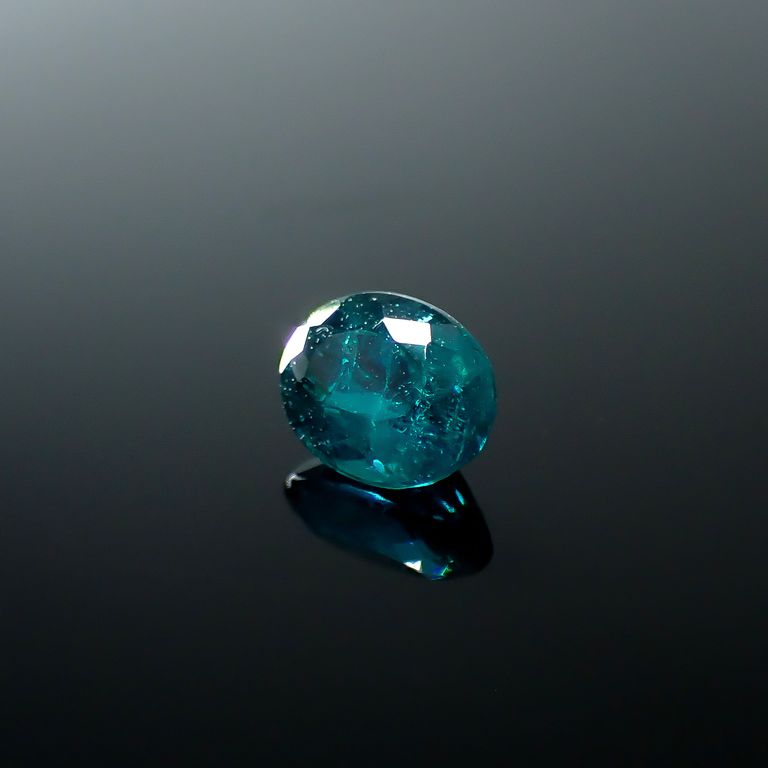 パライバトルマリンは含まれる成分や産地などの違いによって、美しく澄んだブルーから、優しいライトグリーン、またはネオンブルーに輝くものまでのカラーバリエーションがあります。トルマリングループの中の、リシア電気石(エルバイト/Eelbaite)に銅(Cu)が発色要因として含有された宝石で、含有量やそのほかに含まれるマンガン(Mn)の割合によって少しずつ色合いに違いが出ます。