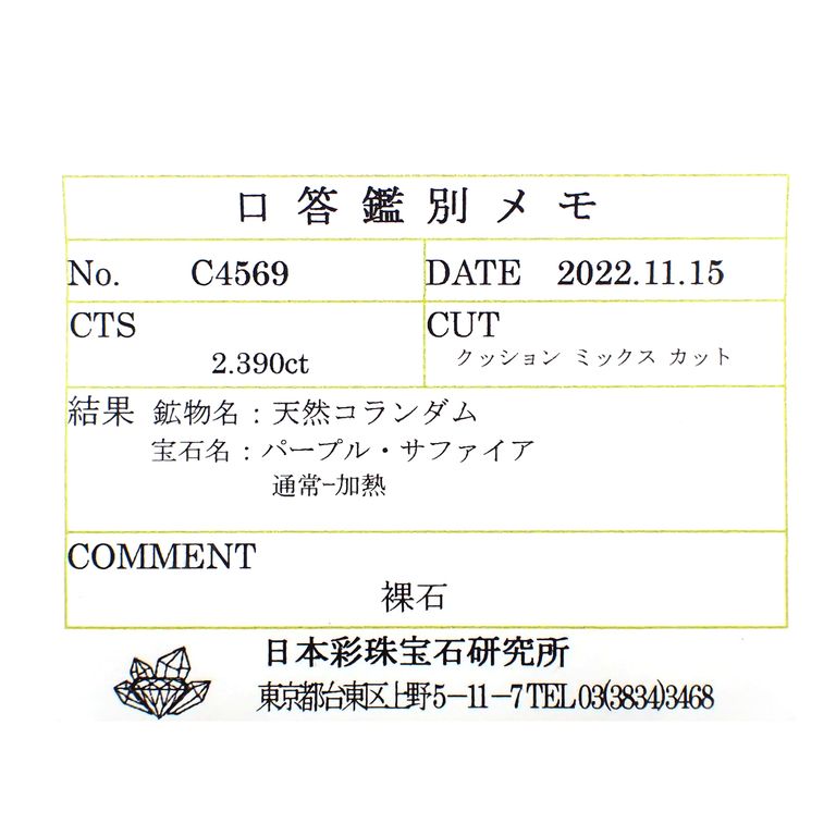 鑑別書がついているものは非加熱検査済み、鑑別所なしのもので非加熱の文字を付けているものは、仕入れ元情報によるものです。