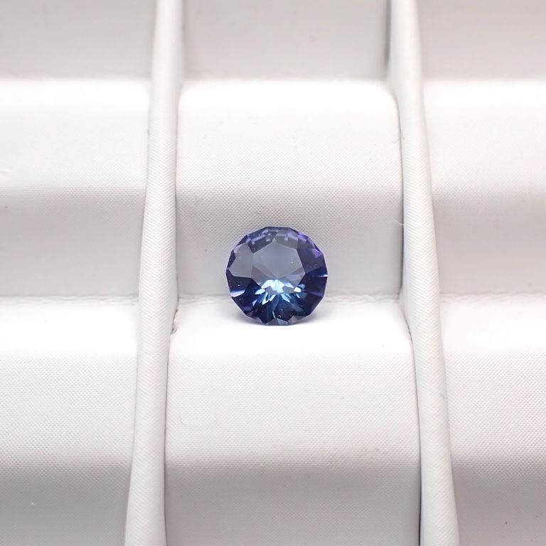 一般的にブルーのゾイサイト(タンザナイト)は加熱が施されていることの多い宝石です。もともと含まれていたバナジウムが加熱されることによってブルーの色が顕著に発現するようになるという特性を生かした手法で、褐色がかった結晶を加熱することで美しいバイオレットからブルーに変わります。