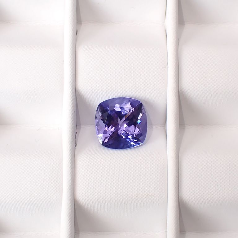 一般的にブルーのゾイサイト(タンザナイト)は加熱が施されていることの多い宝石です。もともと含まれていたバナジウムが加熱されることによってブルーの色が顕著に発現するようになるという特性を生かした手法で、褐色がかった結晶を加熱することで美しいバイオレットからブルーに変わります。