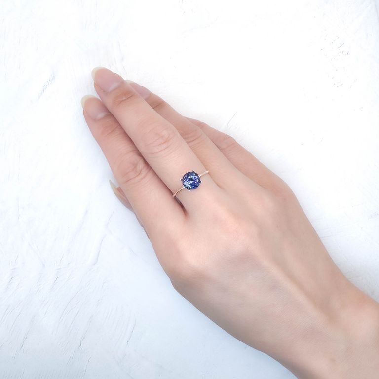多色性という特徴を持っており、見る角度によって青色や紫色が強くなる神秘的な美しさを秘めています。色彩と輝き・テリ感も、タンザナイトの高貴な印象をさらに高めます。