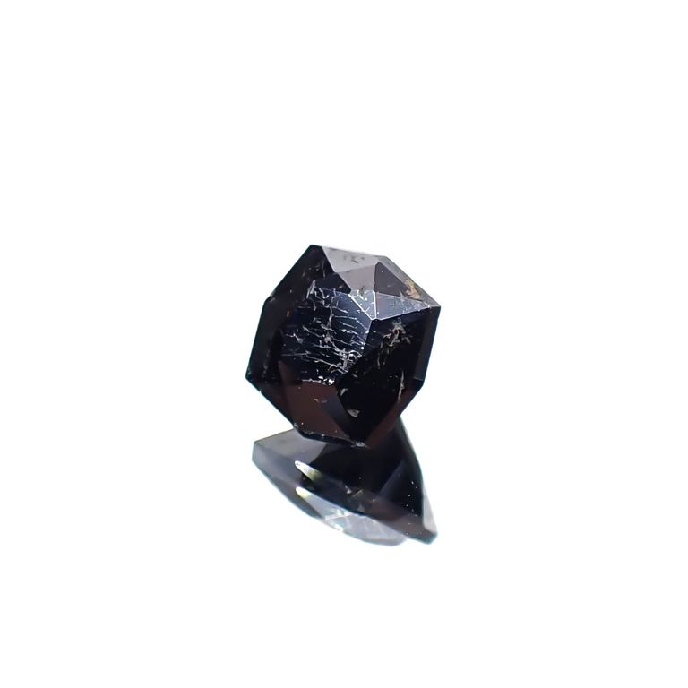 一見黒っぽく見えますが、透かして見ると実は真紅の色合いを持っているのがわかります。色が濃いために輝きもわかりづらいのですが、ダイヤモンドを凌ぐ高い屈折率を誇り、強い光沢を持つ宝石です。