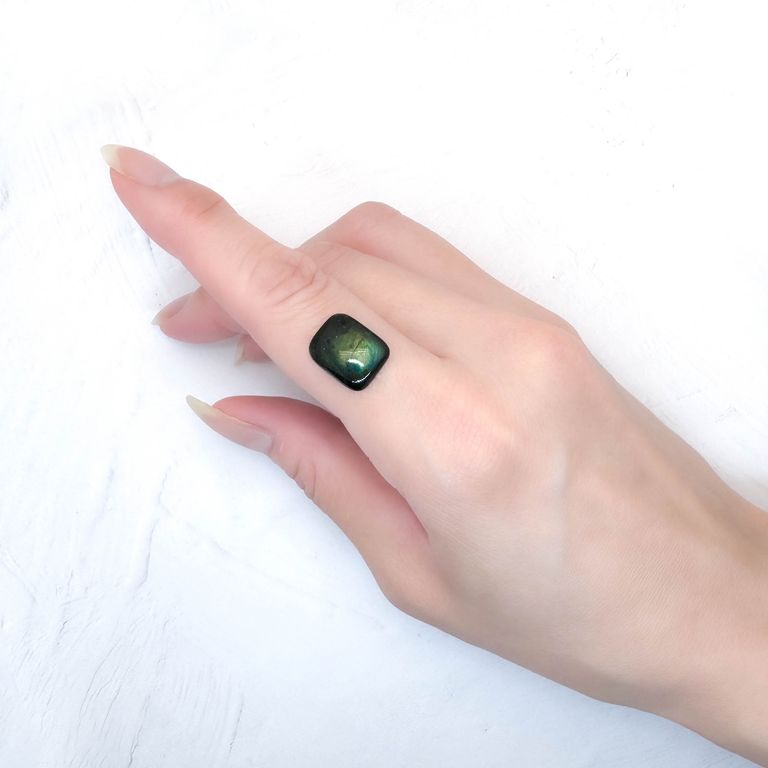 ちなみに、ラブラドライトという石は本来は黄色の透明な長石です。虹色の出るタイプはむしろ変種なのですが、発見された順が虹色を放つものの方が早かったため、『ラブラドライト=虹色の光を放つもの』というイメージが先行し、石種としては基本となるイエローの透明なタイプの方が、ゴールデンラブラドライトというあたかも変種のような名前で呼ばれている面白い裏話のある宝石です。