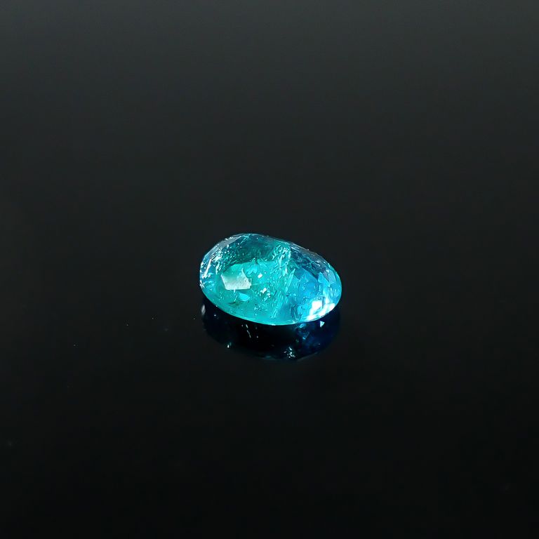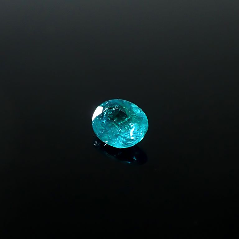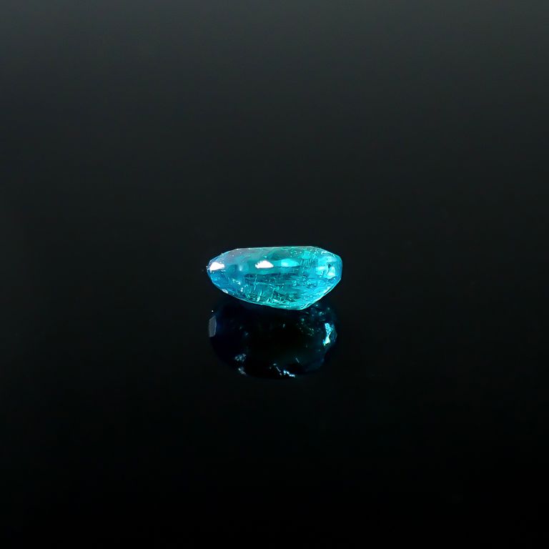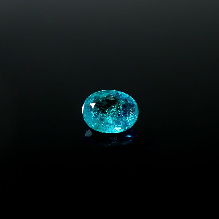 パライバトルマリンは含まれる成分や産地などの違いによって、美しく澄んだブルーから、優しいライトグリーン、またはネオンブルーに輝くものまでのカラーバリエーションがあります。トルマリングループの中の、リシア電気石(エルバイト/Eelbaite)に銅(Cu)が発色要因として含有された宝石で、含有量やそのほかに含まれるマンガン(Mn)の割合によって少しずつ色合いに違いが出ます。