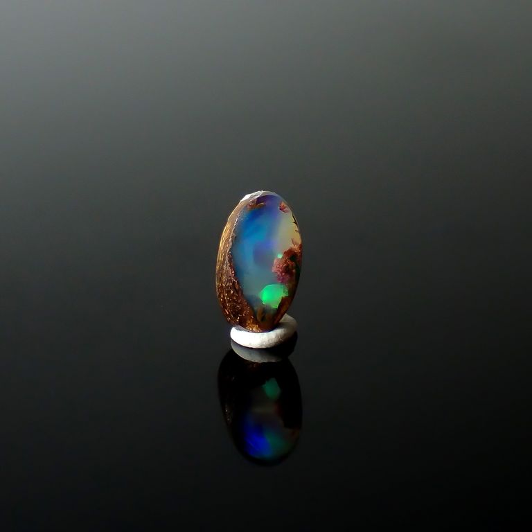 ほとんどの粒子が大きくは形成されず、青や緑の色合いが多くなります。そのため、大きな粒子にならないと見えてこないオレンジや赤の光が出ているオパールはとても希少で価値が高いとされていますが、色合いはやはりコレクターの好みが優先されるもの。どの色合いも美しく、お好きな色の輝きがよく出ているものを選ぶのがいいでしょう。