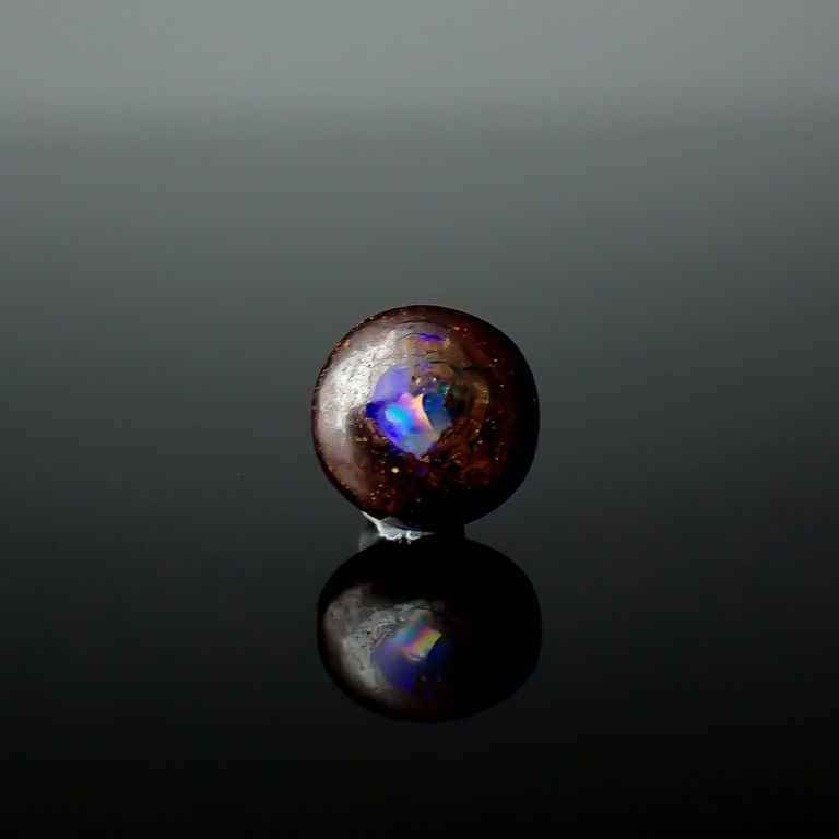 この無数の色の光は、オパールの持つ遊色効果(ゆうしょくこうか)と呼ばれる光学効果によるものです。見る角度を変えると虹色が変化して動くように見えるこの現象は、英語ではPlay of Color(プレー・オブ・カラー)と呼ばれています。このように虹が見えるオパールを、プレシャスオパールと呼びます。