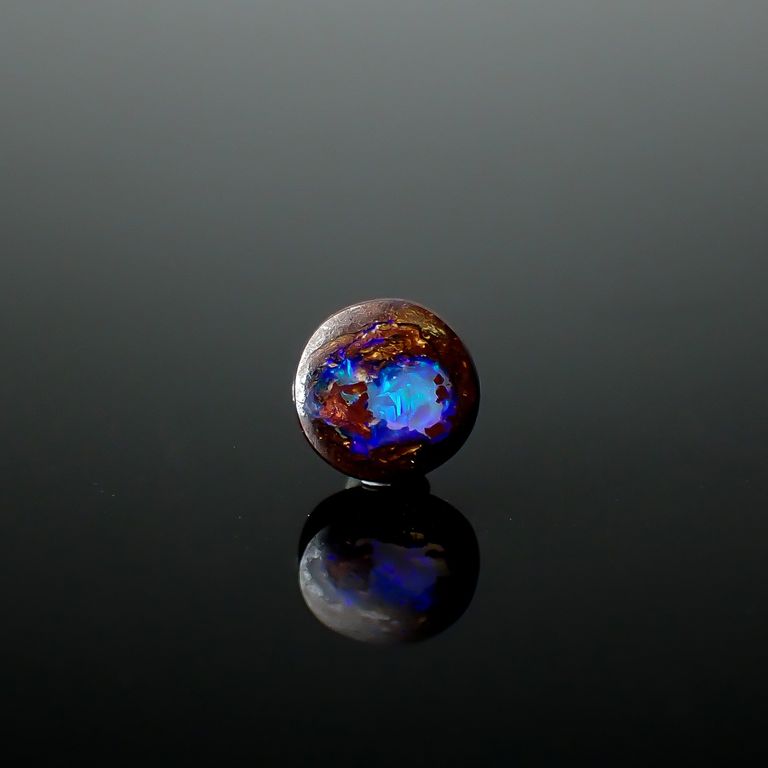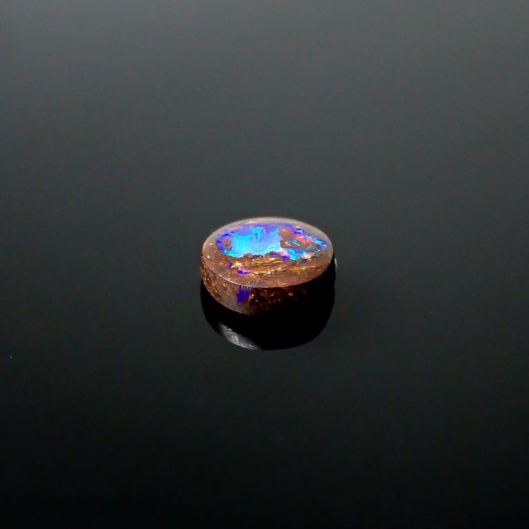 オパールの遊色効果は、オパールの成分である珪酸と水の粒子がきちんとそろっていることが現れる条件です。さらに、その粒子の大きさによって現れる光の色合いが変わり、一番小さな粒子が紫、次いで青→緑→黄→オレンジ、そして一番大きなものが赤です。