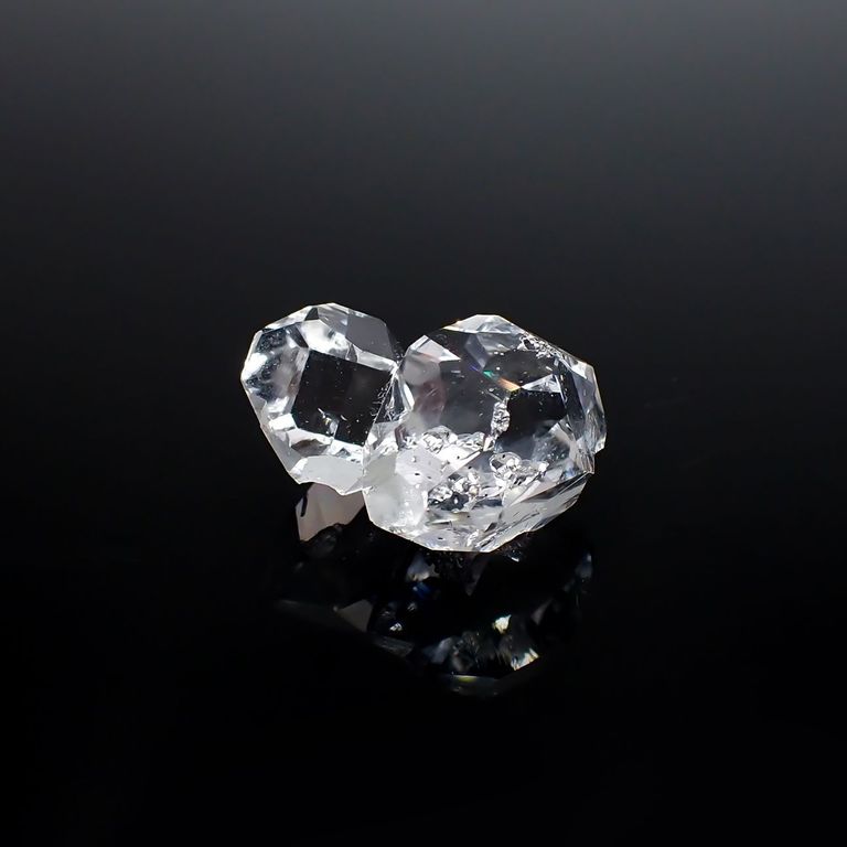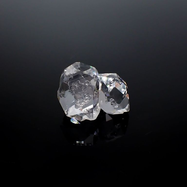 原石の両端がとがった形(ダブルターミネーテッド)が美しく、全く無加工(未研磨)の状態でも強い光沢を放ちます。その姿がまるでダイヤモンドの結晶のように見えることから、「ハーキマーダイヤモンド」と呼ばれるようになりました。