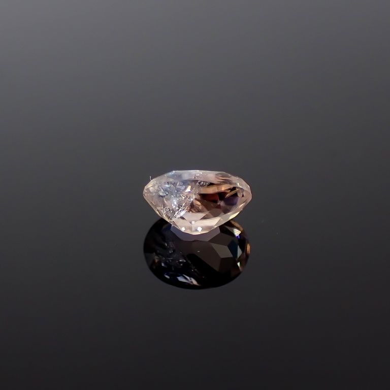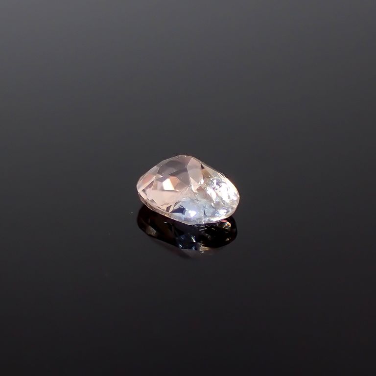 見る角度によってはカラーレスにも見える、二色性を示すベニトアイトですが、もともと地色が無色の結晶を加熱処理すると、含有する微量な成分の違いでごく稀にピンクやピーチカラーのベニトアイトになるものがあります。