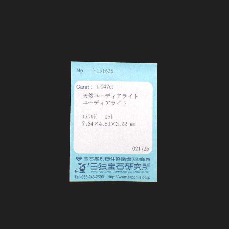 ユーディアライト(宝石名ユーディアライト)ロシア産 ソ付(日独) 1.047ct / 7.34x4.89mm前後 [251231475]