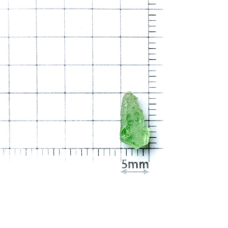 1967年、ケニアとタンザニア国境付近の鉱山地区から発見された、新しい澄んだ明るいグリーンが美しいガーネットです。