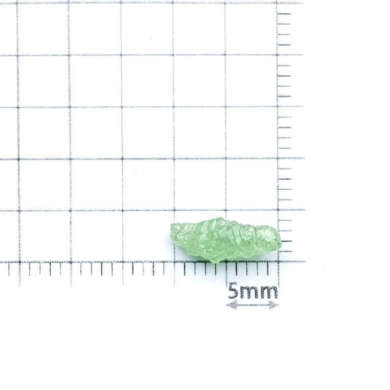 2つの違いは発色要因です。デマントイドは鉄とクロム、ツァボライトはバナジウムとクロムによってグリーンに発色しています。