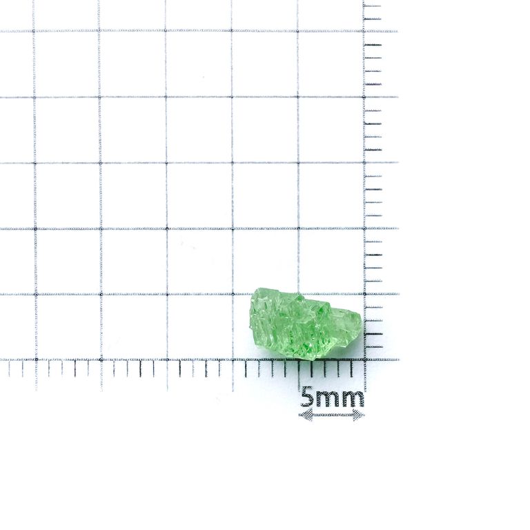 2つの違いは発色要因です。デマントイドは鉄とクロム、ツァボライトはバナジウムとクロムによってグリーンに発色しています。