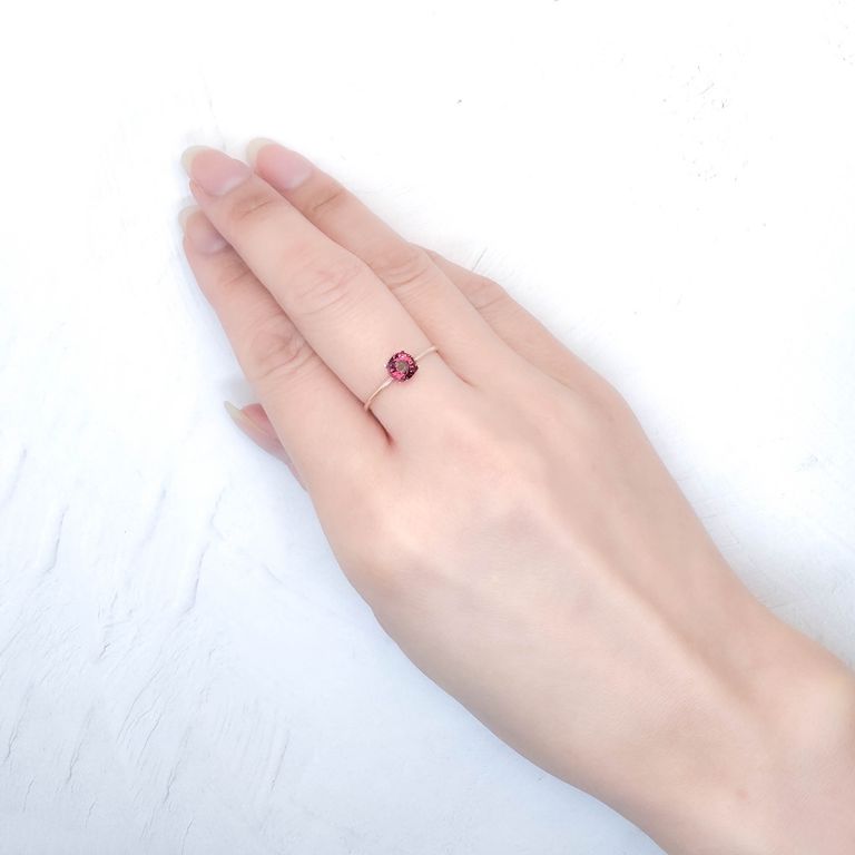 ワインを注いだグラスを光に透かした時に見える、あの透き通った赤い光。ワインレッドと称される紫がかった赤色系のガーネットがロードライトガーネットのカラーで、赤色系ガーネットの中でも特に人気のある色合いです。