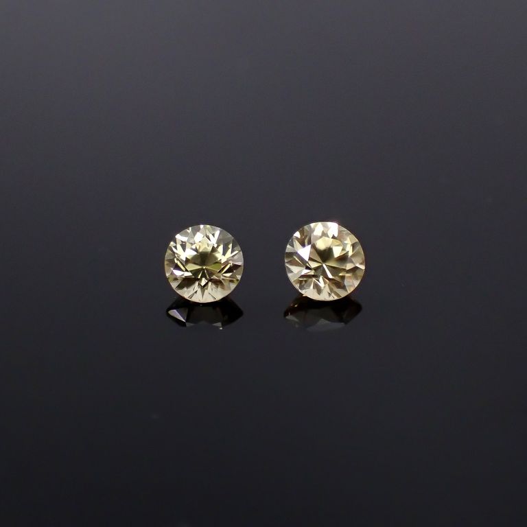 ◇ペアセット◇イエロージルコン(宝石名ジルコン)スリランカ/カンボジア産 識別済 0.91ct(2pcs合計) / 4.1-4.2x4.1-4.2mm前後 [251231487]