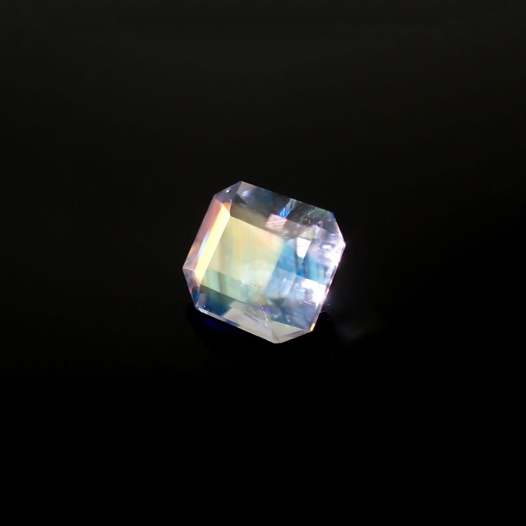 白色やカラーレスの結晶に、見る角度や光加減などによってオーロラのような光(シラー)が浮かび上がる神秘的な宝石です。ブルーをはじめ、イエロー、ピンク、オレンジ、グリーンなどのまさに虹色といった様々な色のシラーを楽しめます。