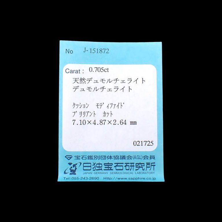 デュモルチェライト 単結晶(宝石名デュモルチェライト)マダガスカル産 ソ付(日独) 0.705ct / 7.1x4.87mm前後 [251231540]