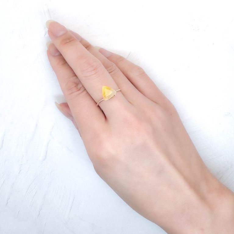 次いで希少とされるのが鮮やかなイエロー。白色ライトを当ててみると、最も近い部分は半透明感が増して白色に近づき、まるで黄色い色合いが外へ外へと逃げていくかのように見えます。とっても不思議です。