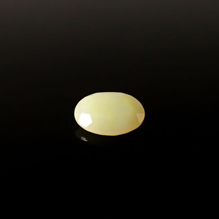次いで希少とされるのが鮮やかなイエロー。白色ライトを当ててみると、最も近い部分は半透明感が増して白色に近づき、まるで黄色い色合いが外へ外へと逃げていくかのように見えます。とっても不思議です。