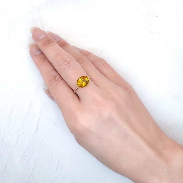 水晶の色変種で、黄金色が美しい宝石です。淡いレモンイエローからマデイラシトリンと呼ばれる赤みの強いタイプまであります。