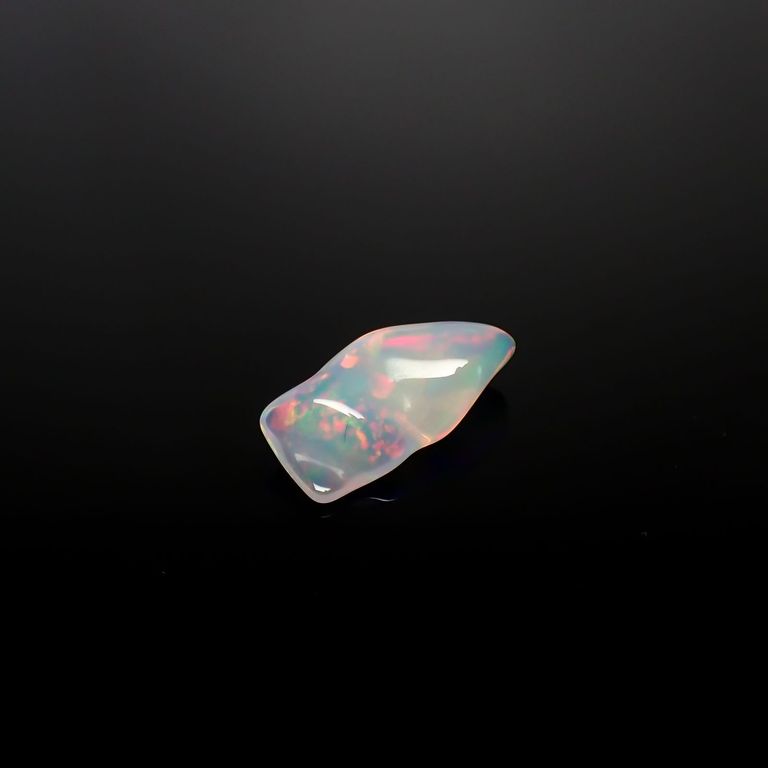 エチオピア産のプレシャスオパールで、虹のように様々な色が浮かびあがる「遊色効果/ play of color」が美しい宝石です。見る角度や光のあたり方や強さ、室内・野外などでも、全く別の表情をみせてくれます。