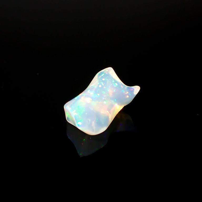 エチオピア産のプレシャスオパールで、虹のように様々な色が浮かびあがる「遊色効果/ play of color」が美しい宝石です。見る角度や光のあたり方や強さ、室内・野外などでも、全く別の表情をみせてくれます。
