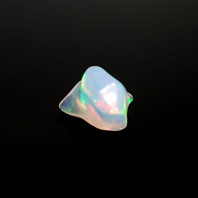 エチオピア産のプレシャスオパールで、虹のように様々な色が浮かびあがる「遊色効果/ play of color」が美しい宝石です。見る角度や光のあたり方や強さ、室内・野外などでも、全く別の表情をみせてくれます。