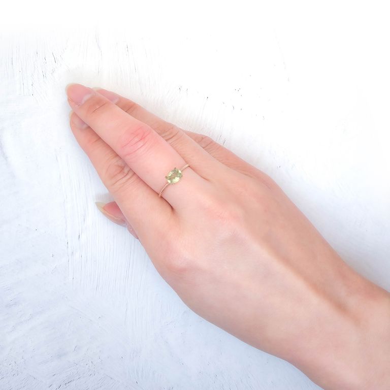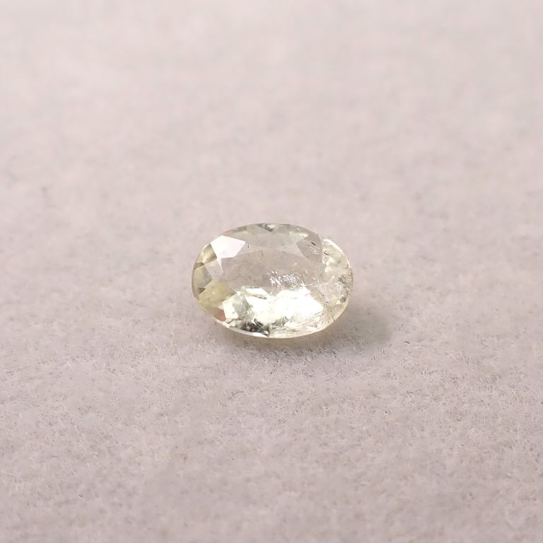 ライムイエローに輝くこの宝石は、発見当初その色合いからクリソベリルだと思われていました。クリソベリルの鉱山だ!といち早く鉱山権を手に入れたバイヤーがいたのですが、いざ加工をしようとすると簡単に割れてしまう… おかしい、違うのか?と、鉱山は放棄されてしまったそうです。