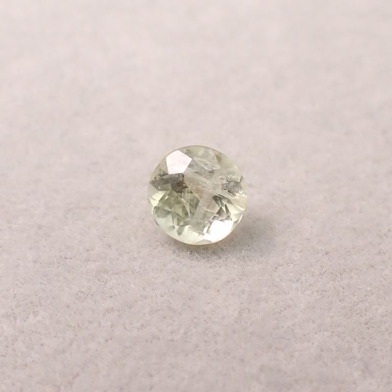 ライムイエローに輝くこの宝石は、発見当初その色合いからクリソベリルだと思われていました。クリソベリルの鉱山だ!といち早く鉱山権を手に入れたバイヤーがいたのですが、いざ加工をしようとすると簡単に割れてしまう… おかしい、違うのか?と、鉱山は放棄されてしまったそうです。