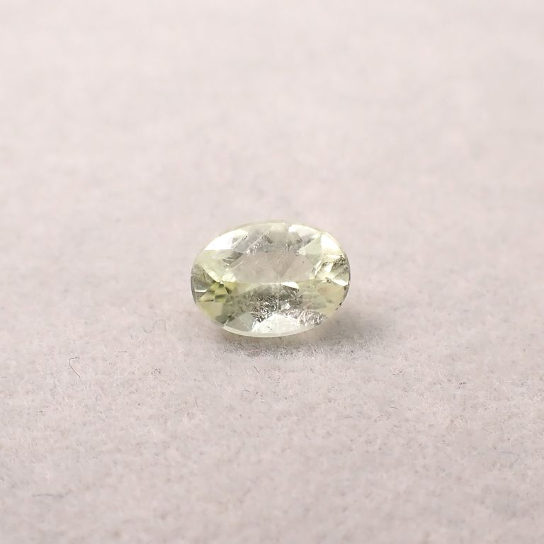 ライムイエローに輝くこの宝石は、発見当初その色合いからクリソベリルだと思われていました。クリソベリルの鉱山だ!といち早く鉱山権を手に入れたバイヤーがいたのですが、いざ加工をしようとすると簡単に割れてしまう… おかしい、違うのか?と、鉱山は放棄されてしまったそうです。
