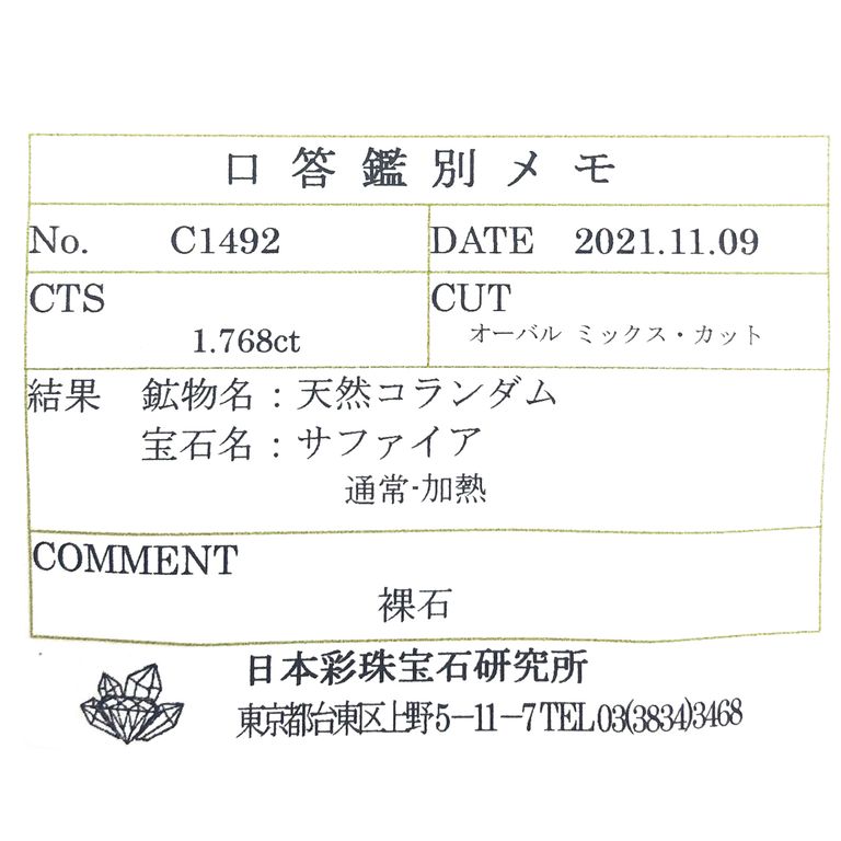 ※サファイアは鑑別上「通常-加熱」と記載される宝石です。